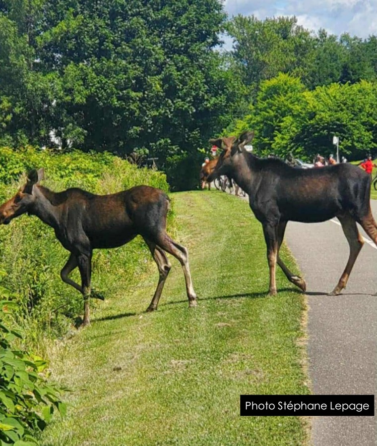 Les animaux ont d’abord été aperçus à Lévis, circulant sur la piste cyclable de la rue Saint-Laurent, où plusieurs piétons et cyclistes ont pu les observer de près.